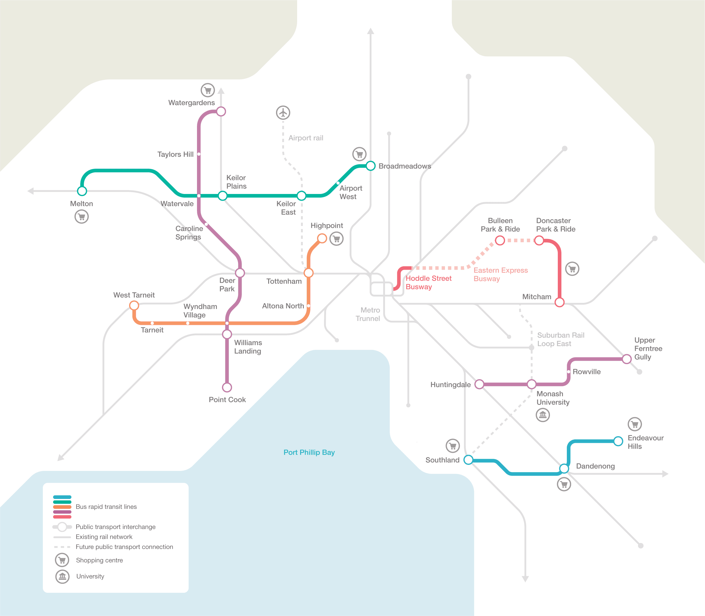 - Mitcham to Melbourne’s city centre (including a new Hoddle Street busway for more reliable and efficient services from suburbs like Doncaster and Templestowe).