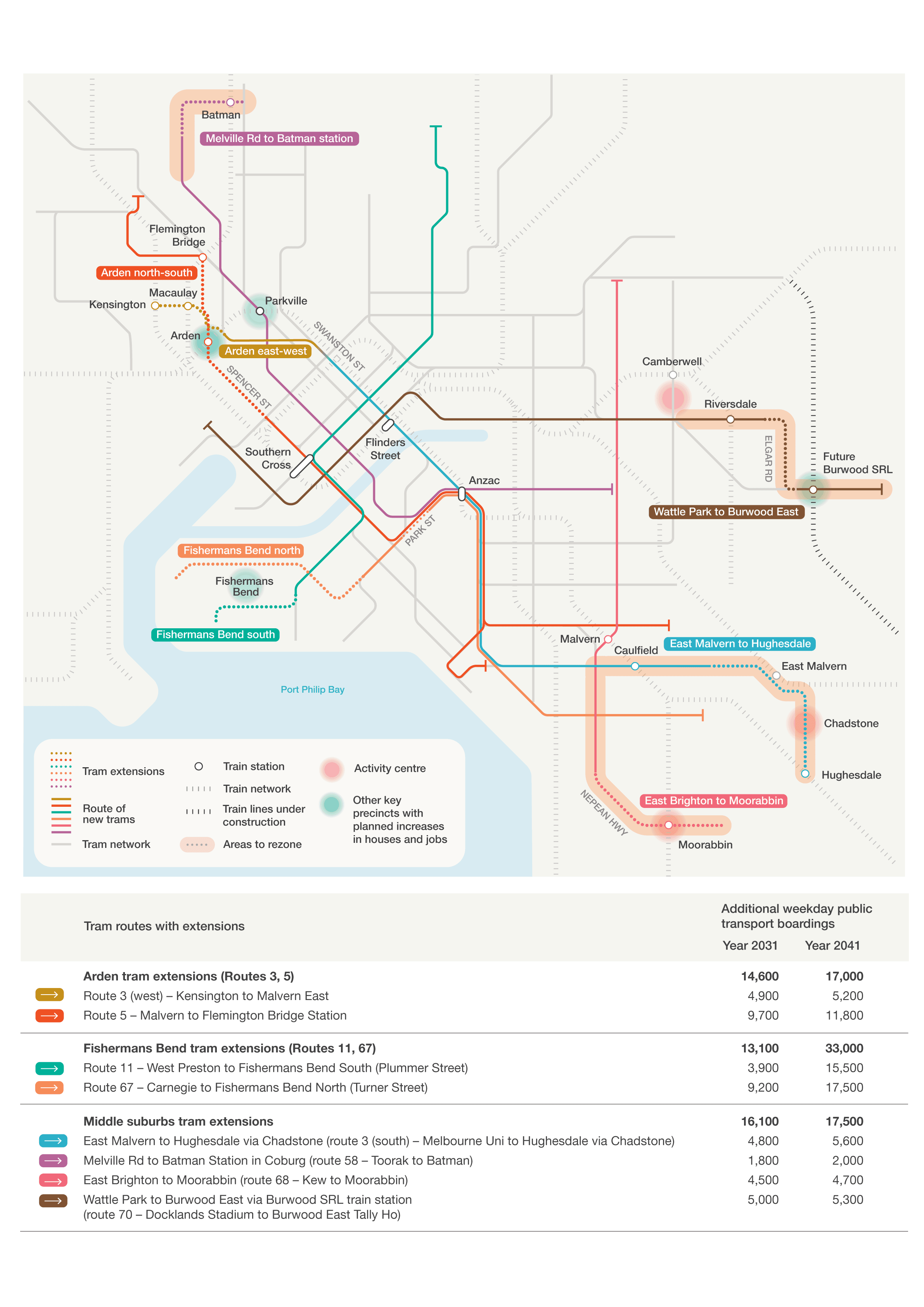 Figure 1: Tram extensions can make the most of Melbourne’s tram network and support priority precincts and activity centres.