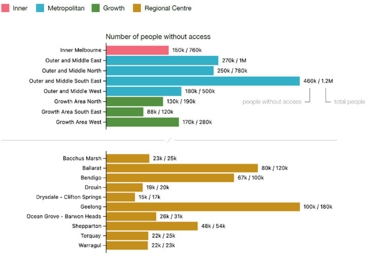 Figure 12: Many Victorians cannot access outdoor sports fields within a 10 minute walk